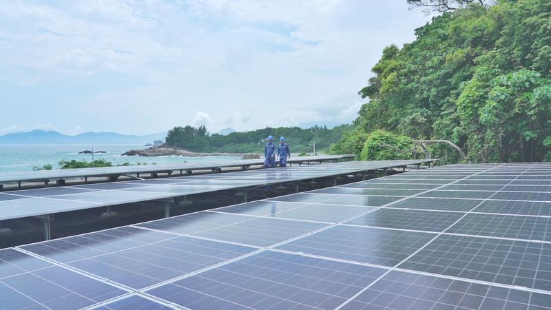 惠州供電局在三門島建設(shè)的光伏發(fā)電設(shè)施與海島周邊的綠植融為一體。