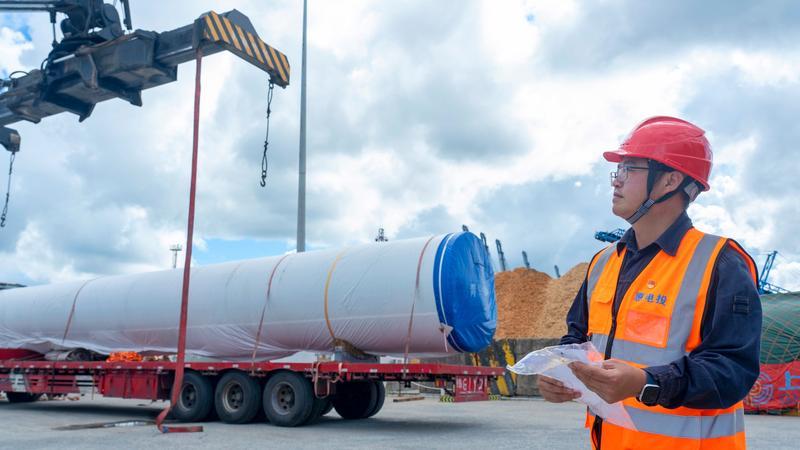 當(dāng)儲(chǔ)能裝置在海島穩(wěn)穩(wěn)“扎根”,建設(shè)團(tuán)隊(duì)又馬不停蹄奔赴新戰(zhàn)場(chǎng)——面對(duì)27米長(zhǎng)葉片、29噸重的“巨無霸”風(fēng)機(jī),既要安全運(yùn)抵山頂,又不傷一草一木,這道“綠色運(yùn)輸”必答題,該如何破題?惠州市煥能電氣安裝有限公司相關(guān)負(fù)責(zé)人楊威介紹:“我們結(jié)合三門島的地形地貌,對(duì)常規(guī)仰舉車進(jìn)行了設(shè)計(jì)改造,通過提升抬舉角度、增設(shè)旋轉(zhuǎn)功能,多途徑調(diào)整風(fēng)機(jī)葉片在運(yùn)輸過程中的姿態(tài),巧妙避讓‘蔥蘢綠意’,真正做到綠色籌劃、綠色落地!