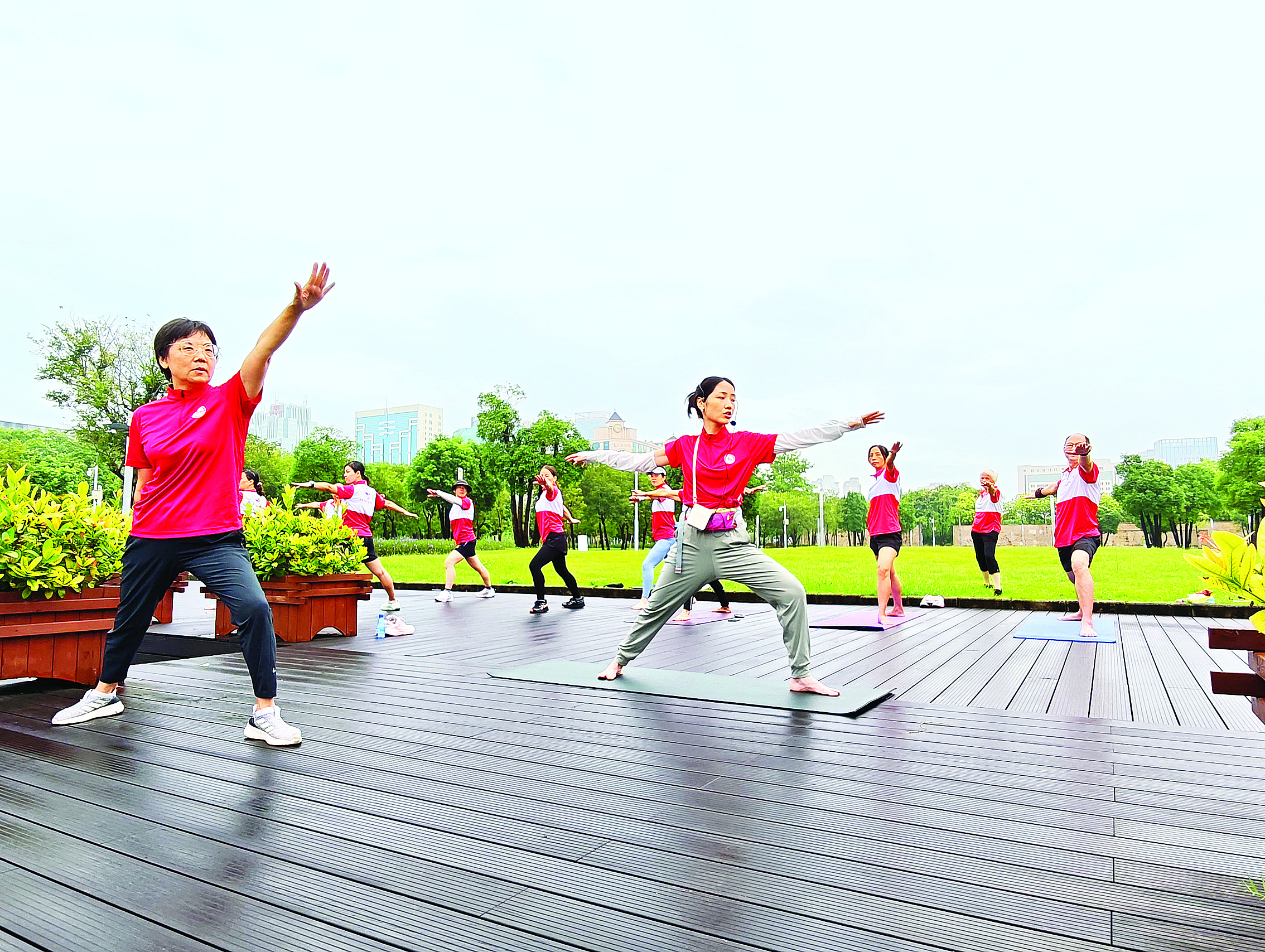 新時(shí)代文明實(shí)踐(市民公園)撿跑志愿服務(wù)隊(duì)每周三早上在市民公園開設(shè)免費(fèi)瑜伽課。惠州日?qǐng)?bào)記者香金群 攝