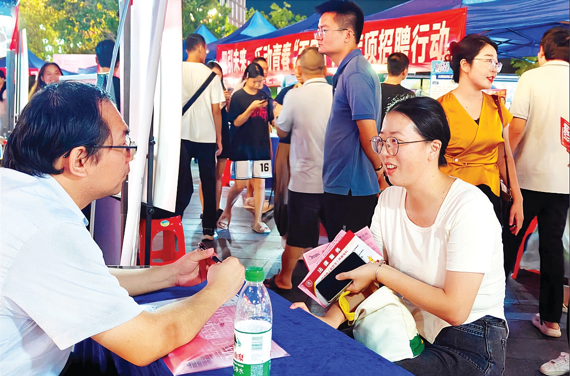 招聘夜市現(xiàn)場(chǎng),不少求職者前來求職。