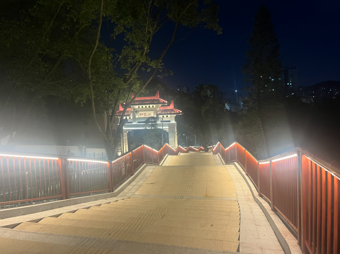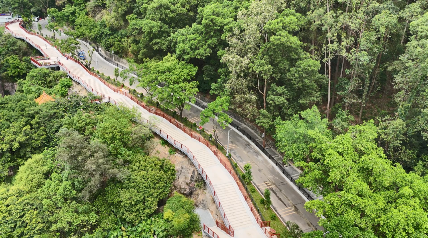 值得一提的是,東門棧橋呈現(xiàn)兩大亮點(diǎn)。觀景休閑更舒適:棧橋視野開闊,專門設(shè)置1處專用觀景平臺及多處休息平臺,市民游客上下山途中可隨時駐足觀賞山林景色,同時緩解登山疲勞,尤其適合親子、老年群體使用;登山出行更輕松:棧橋主道梯段坡度平緩,大幅降低登山體力消耗,讓市民登山休閑的過程更輕松、更安全。