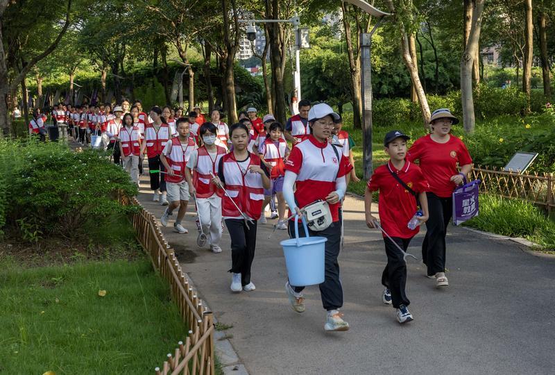 “每天早晨,陽(yáng)光灑在志愿者馬甲上,我牽著媽媽的手來(lái)?yè)炫,感覺(jué)自己像個(gè)守護(hù)城市的小衛(wèi)士!8歲的小霖婕在作文中這樣寫道。當(dāng)家長(zhǎng)帶著孩子來(lái)到新時(shí)代文明實(shí)踐活動(dòng)的點(diǎn)位后,便有專業(yè)的志愿者在等候了。從工具分發(fā)、交通安全提醒,到環(huán)保知識(shí)講解、實(shí)踐禮儀引導(dǎo),全程提供細(xì)致指導(dǎo)。如:金山湖志愿服務(wù)隊(duì)“愛(ài)心寶媽團(tuán)”更細(xì)化保障至“過(guò)馬路避讓”“彎腰防磕碰”等細(xì)節(jié),有效消除安全隱患,讓家長(zhǎng)成為孩子公益路上的“第一引導(dǎo)人”。