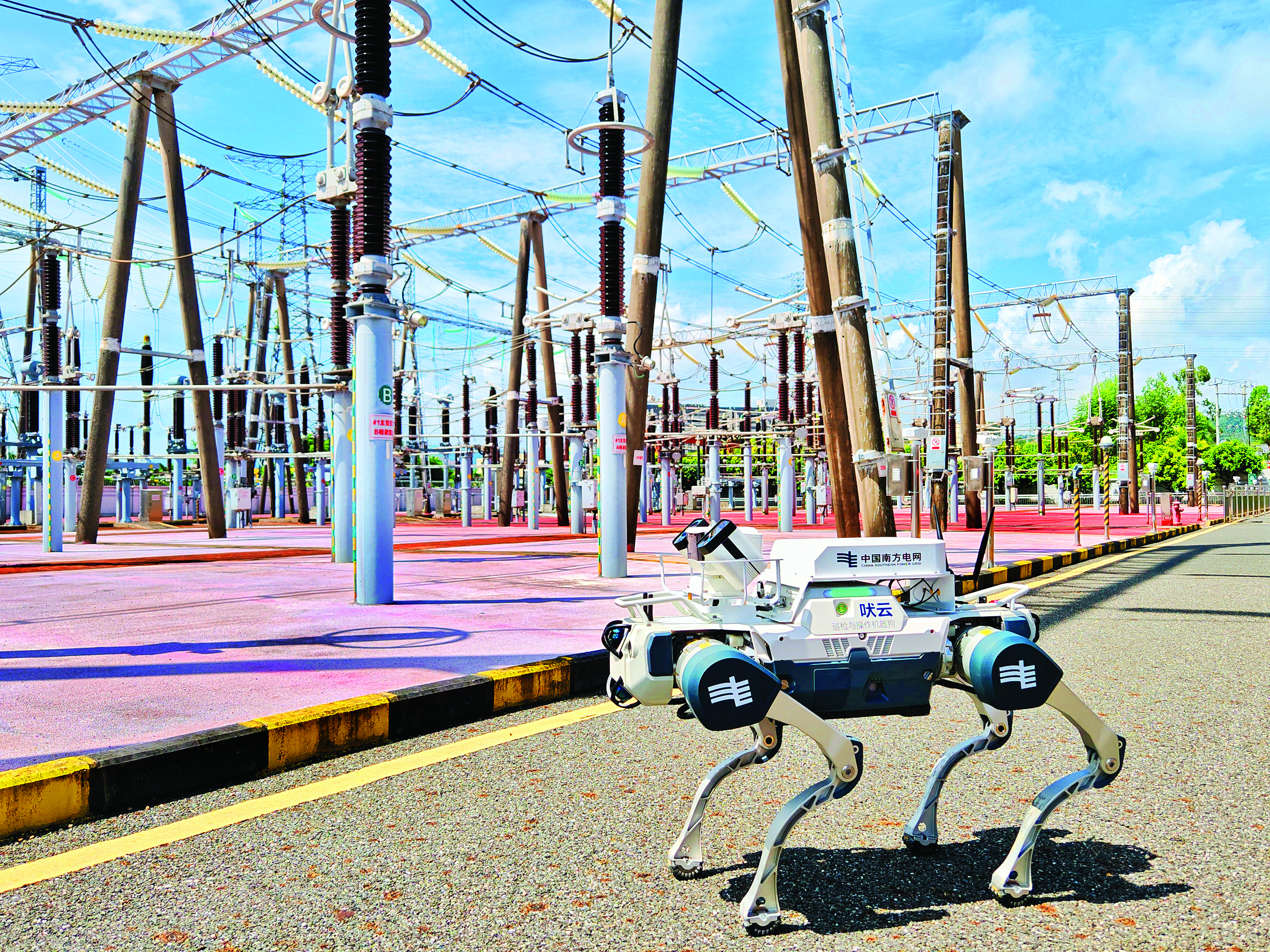 除了無人機(jī)“空中哨兵”,惠州供電局首臺巡視機(jī)器狗也加入了變電站保電戰(zhàn)隊(duì)。“這款搭載多傳感器融合導(dǎo)航系統(tǒng)的四足機(jī)器人,可自主完成設(shè)備紅外測溫、表計(jì)識別、異常聲響分析等復(fù)雜任務(wù),有效解決人工巡視強(qiáng)度大、環(huán)境受限等痛點(diǎn)。”惠州供電局變電管理二所變電運(yùn)行及智能運(yùn)維專責(zé)劉瀚林介紹道。