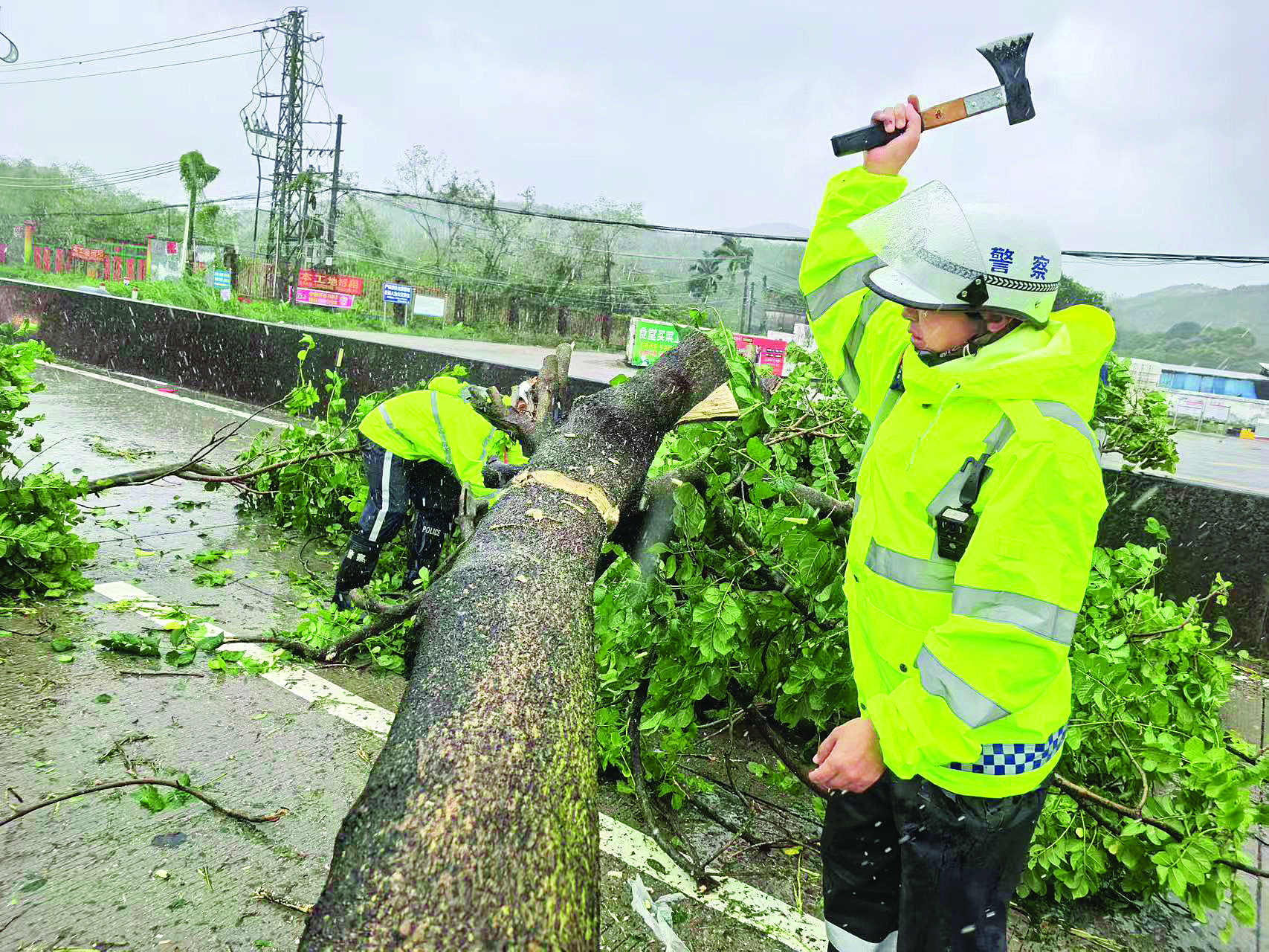 抗擊臺(tái)風(fēng)“樺加沙”期間,惠州交警全員上崗,堅(jiān)守路面一線指揮疏導(dǎo)交通,全力做好清障保暢工作,守護(hù)市民群眾出行安全。