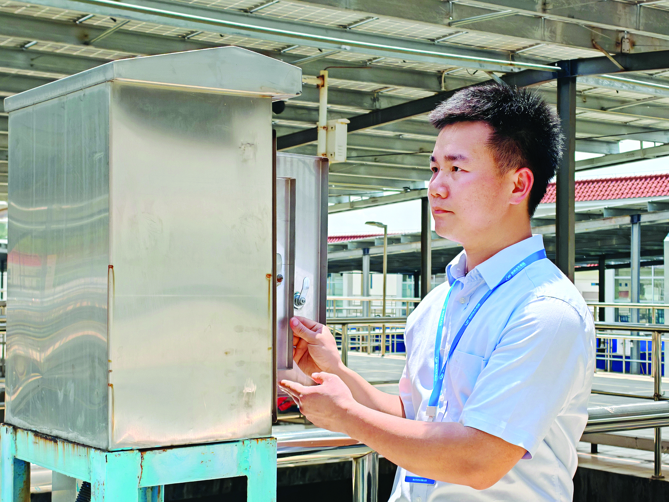 “潼湖水廠是市區(qū)四大主力水廠之一,當(dāng)前日供水能力20萬(wàn)噸,主要擔(dān)負(fù)著仲愷高新區(qū)等市區(qū)南部片區(qū)的供水重任!痹鴸|釗說,他2014年入職市供水公司就到了當(dāng)時(shí)新建成的潼湖水廠,長(zhǎng)期任職于水廠維修班,主要職責(zé)是巡查設(shè)備,排查處理各種故障隱患,并對(duì)設(shè)施設(shè)備進(jìn)行升級(jí)改造。