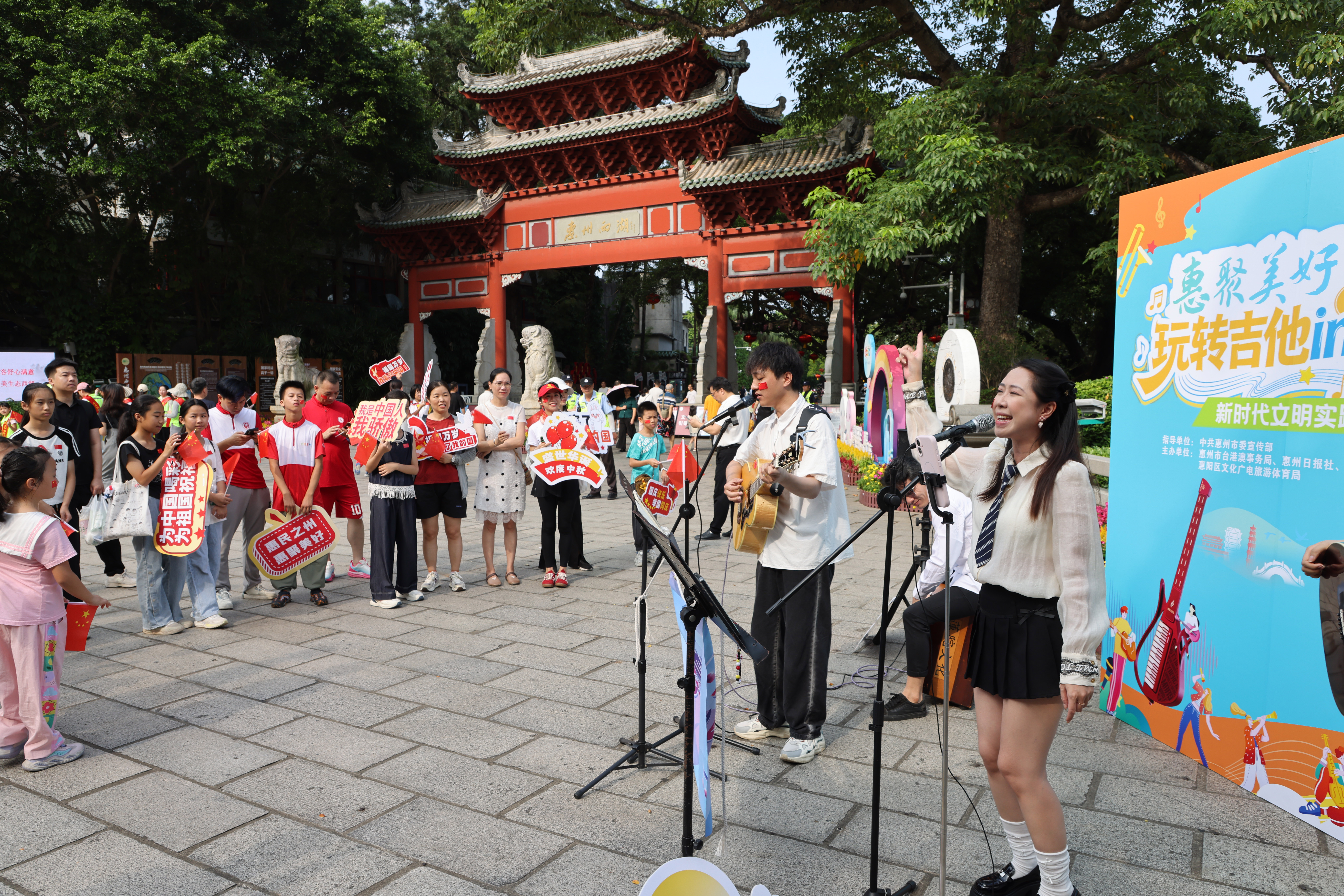 “惠聚美好”新時代文明實踐活動——“玩轉(zhuǎn)吉他in惠州”國慶吉他快閃系列活動,是為慶祝中華人民共和國成立76周年,豐富市民假日文化生活,展示惠州“中國吉他產(chǎn)業(yè)之都”的獨特魅力而開展,于10月1日和10月3日在四個具有惠州特色的場地展開,為市民和游客帶來一場突如其來的音樂驚喜。