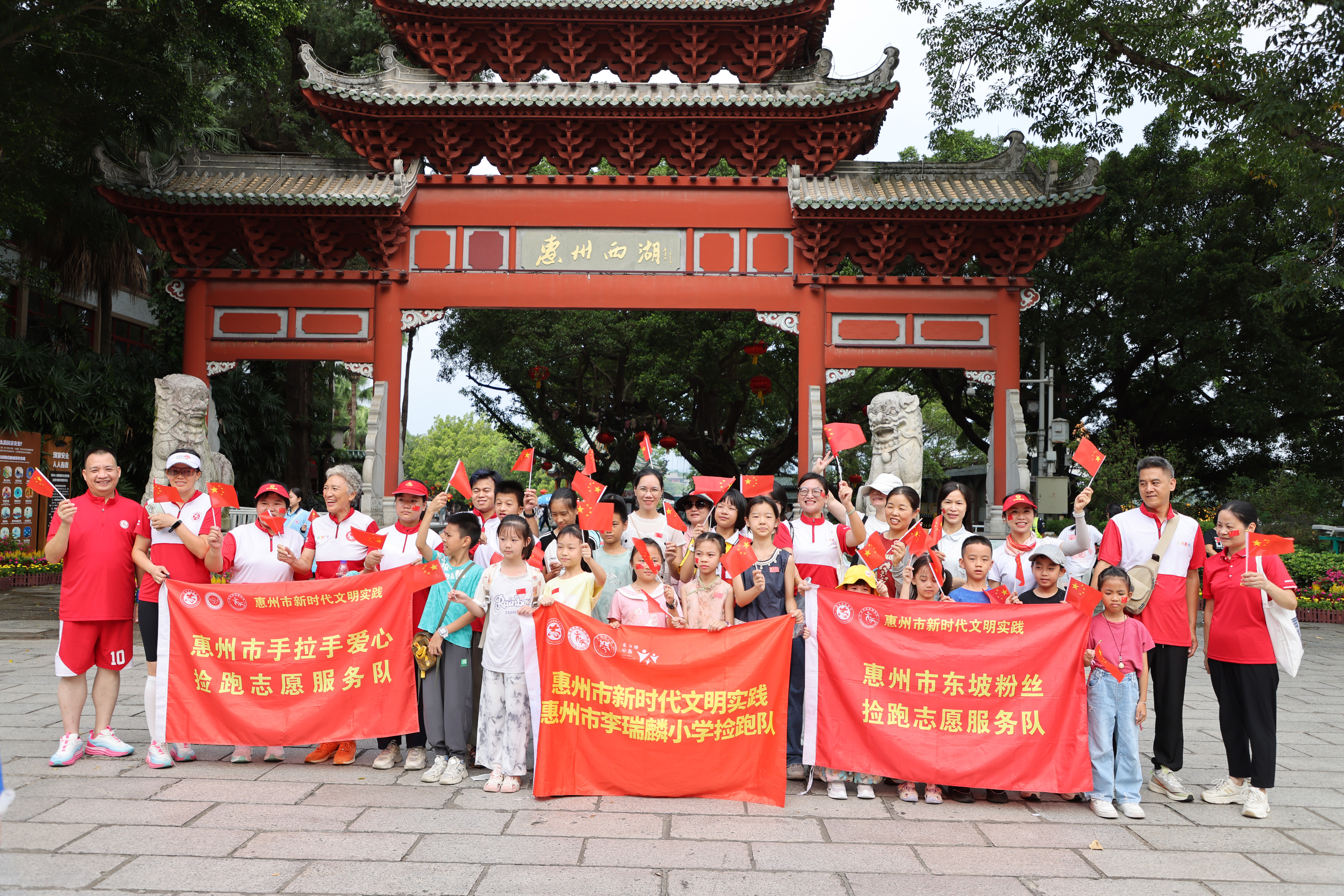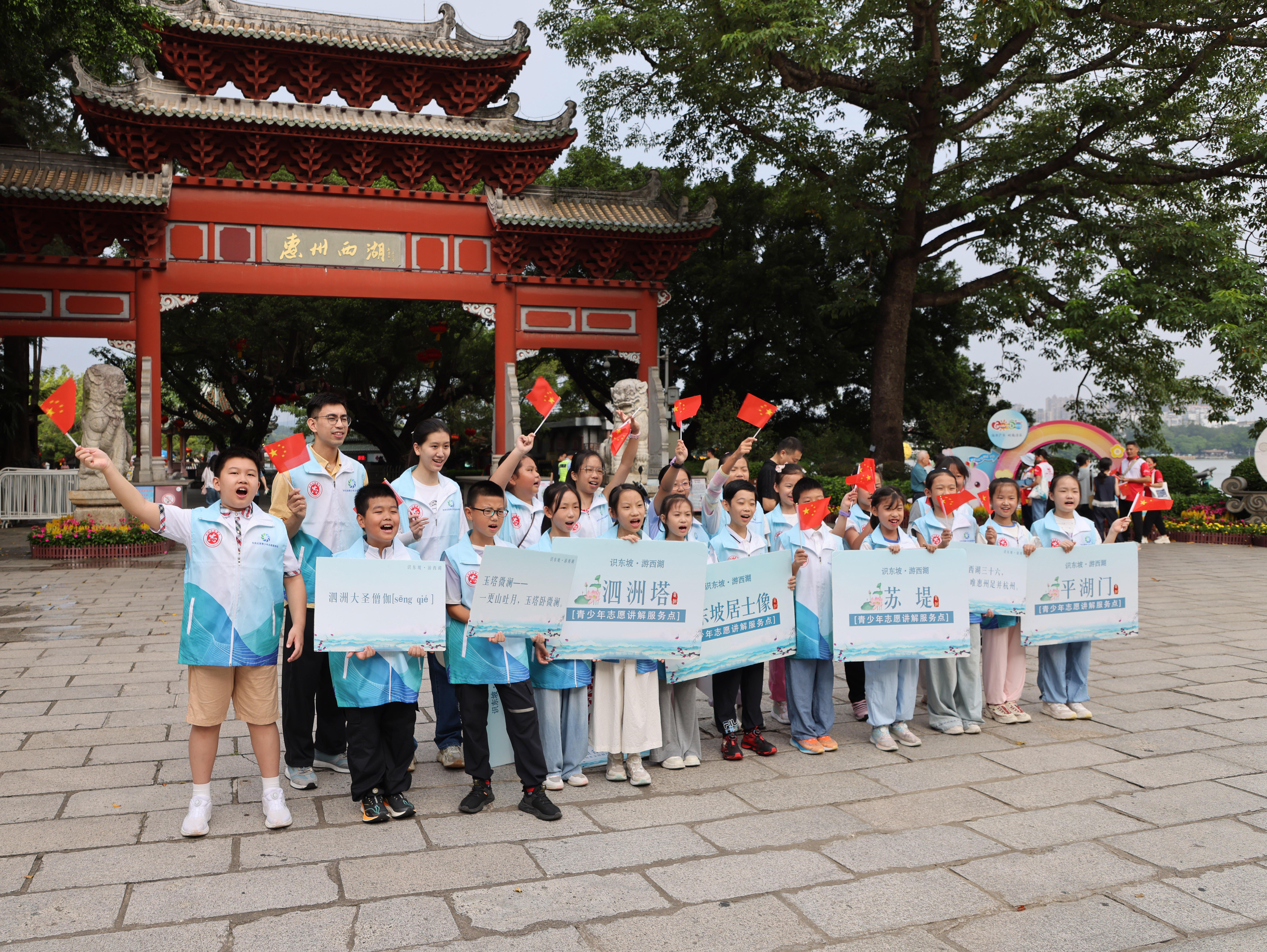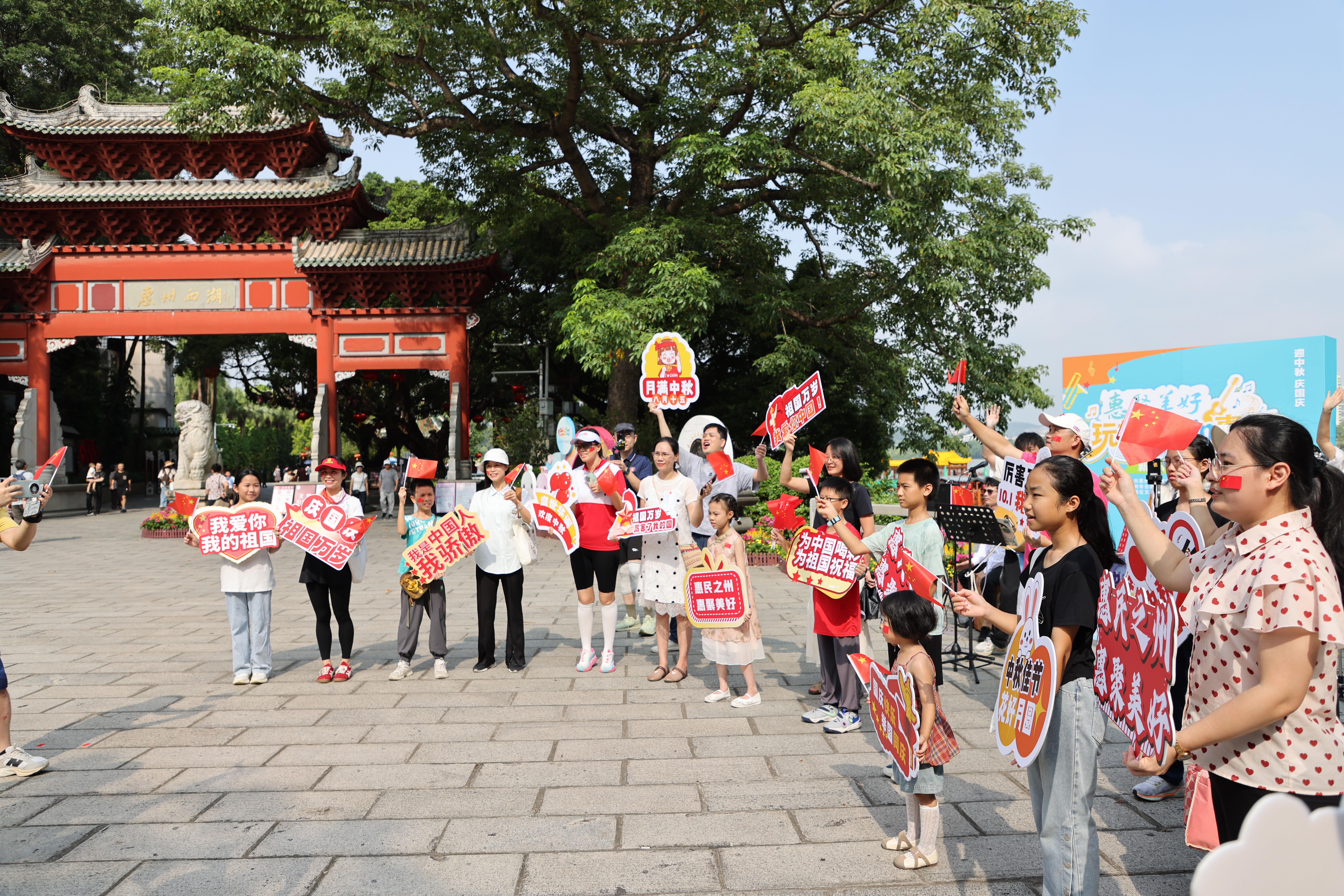 繼今天上午惠州西湖平湖門活動圓滿結(jié)束,今天下午17:00-18:00,第二場快閃活動將于市民樂園大草坪舉行,期待市民游客共同參與,為國慶喝彩,祖國祝福。