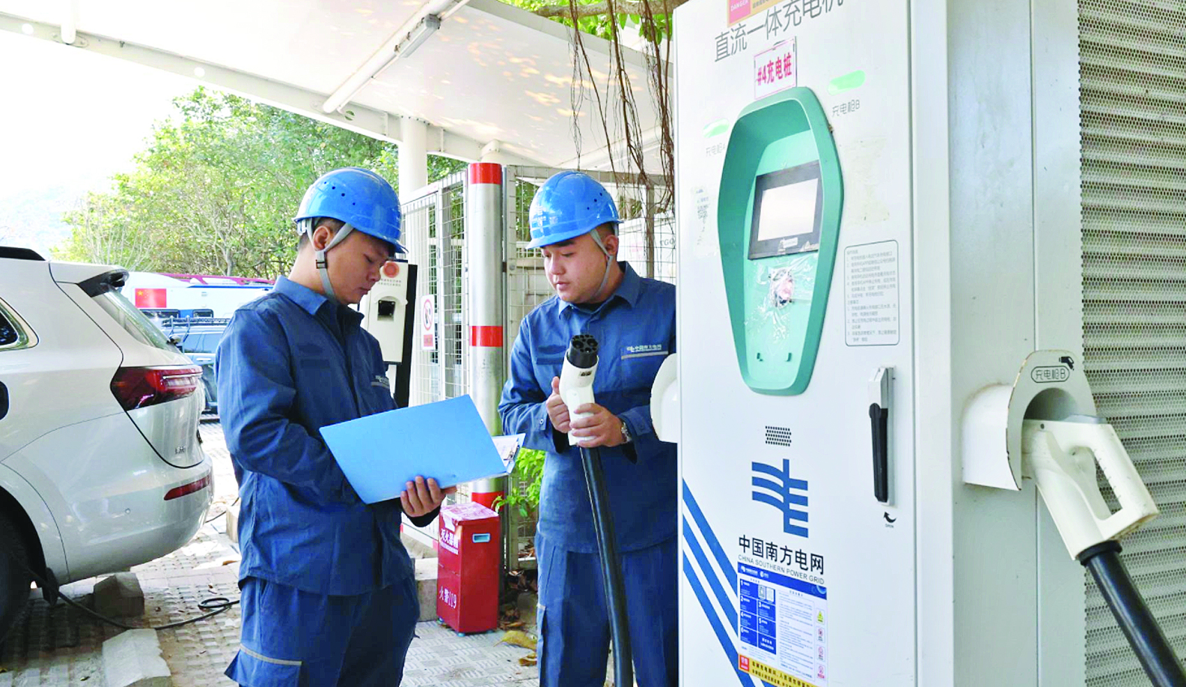 惠東供電局巽寮供電所運維人員對景區(qū)充電樁開展用電檢查。 惠州供電局提供