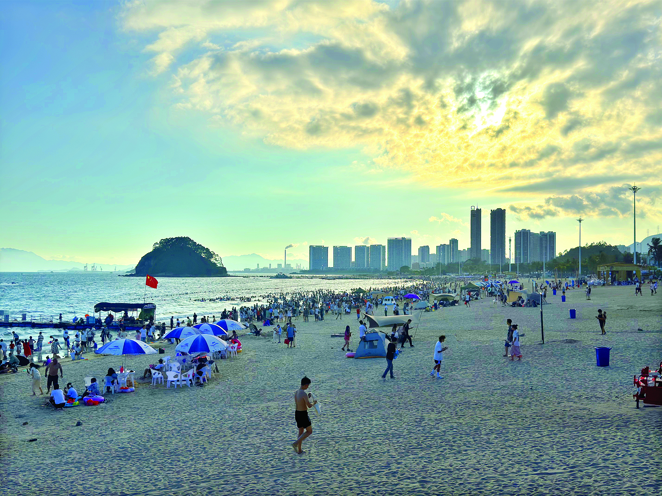 大亞灣黃金海岸游人如織;葜萑?qǐng)?bào)記者黃旭新 攝