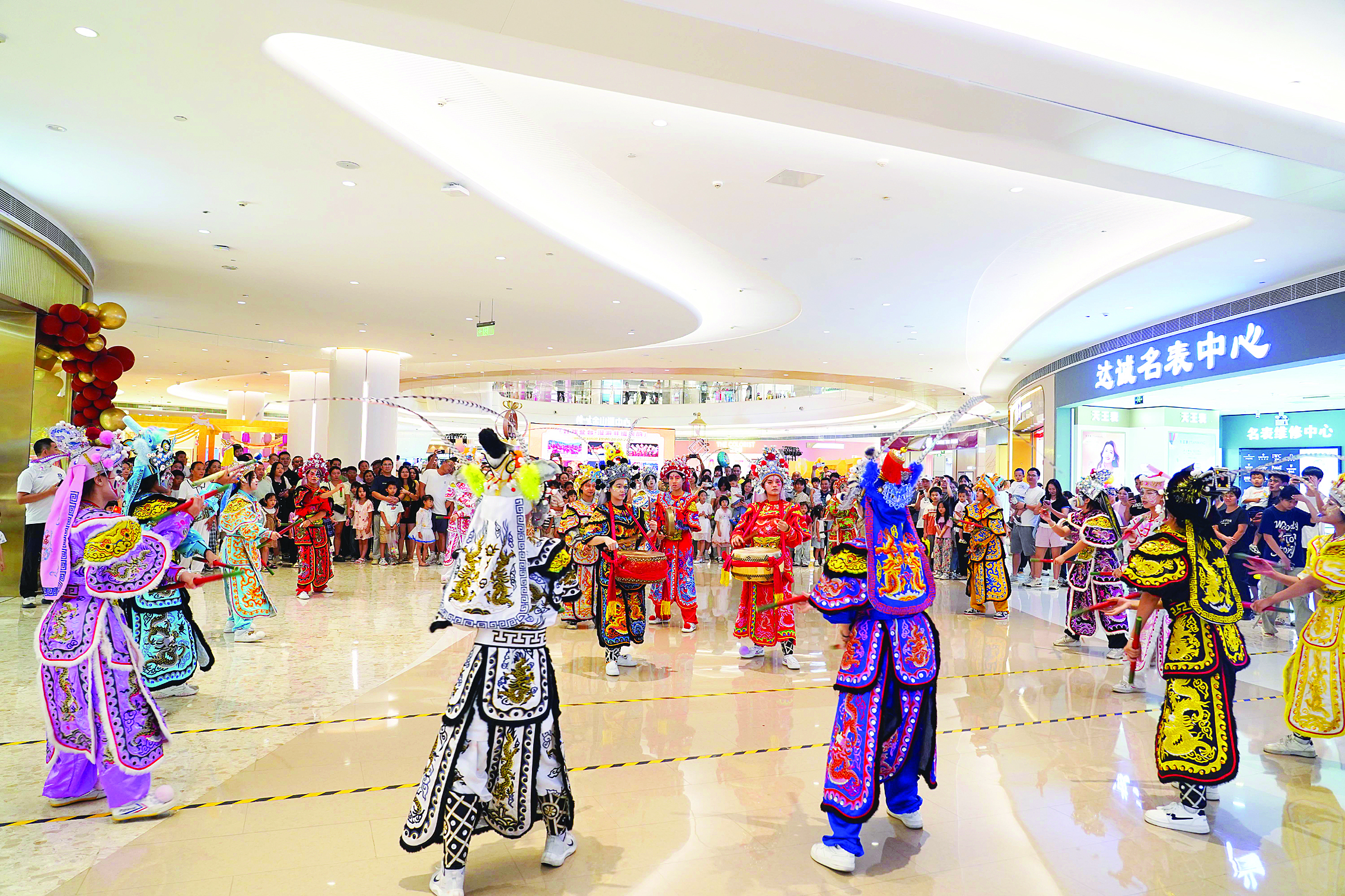 “我們以‘宋韻’為核心,打造了多層次的沉浸式民俗文化場景!甭∩鹕胶行南嚓P(guān)負(fù)責(zé)人介紹,雙節(jié)期間,商場不僅布置主題街區(qū),還在街區(qū)舞臺(tái)推出了“好戲登臺(tái)·漫游非遺宋韻”系列非遺表演,包括氣勢(shì)磅礴的女子英歌舞、精彩絕倫的川劇變臉、唯美夢(mèng)幻的非遺魚燈表演、驚險(xiǎn)刺激的非遺火壺火舞以及結(jié)合節(jié)日主題的雜技嫦娥奔月等,讓市民近距離感受中華優(yōu)秀傳統(tǒng)文化的魅力。此外,商場還特別呈現(xiàn)“十里紅妝 穿越宋代婚典”表演,通過還原宋代婚禮儀式,讓觀眾身臨其境地體驗(yàn)古代婚俗文化。