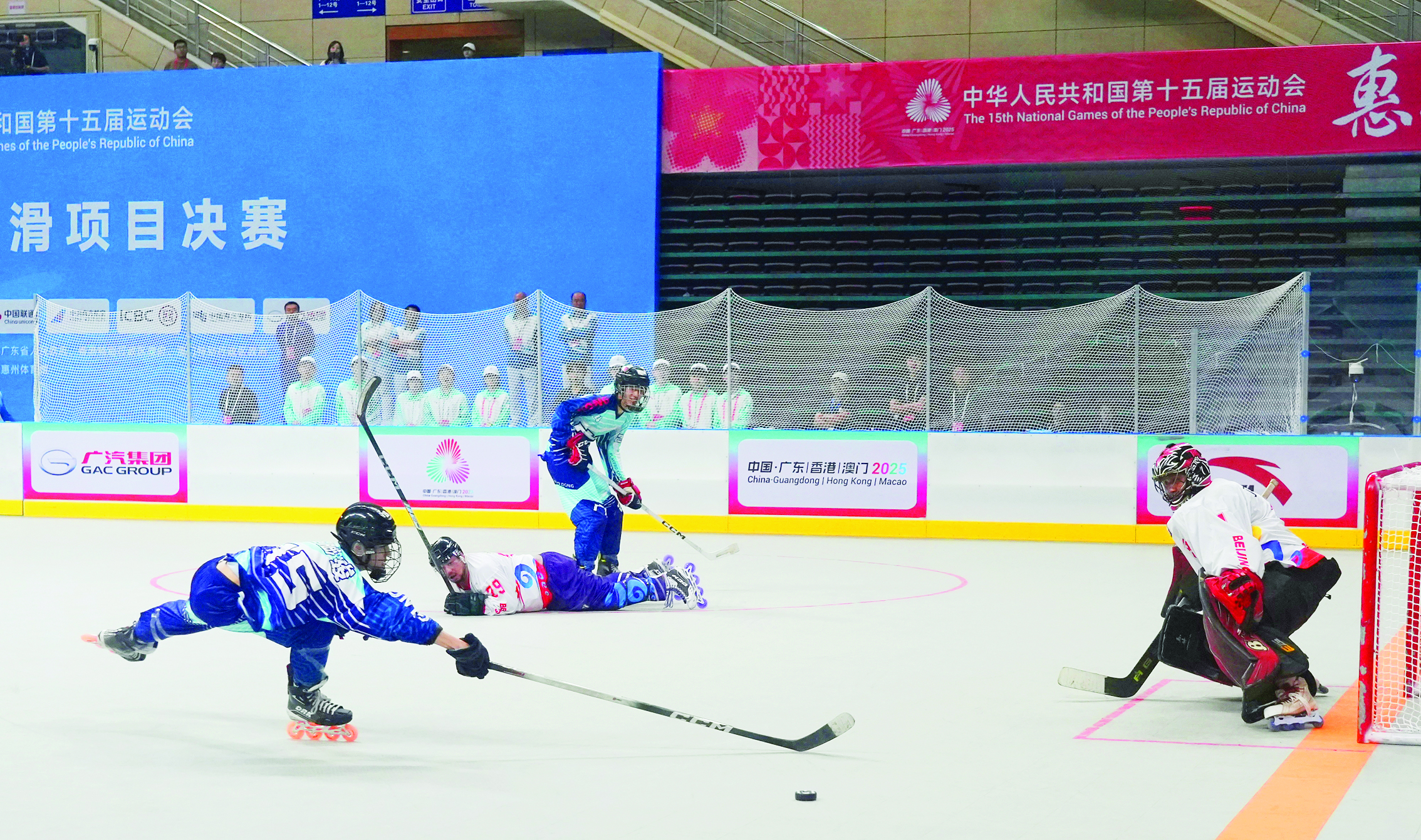 十五運(yùn)會(huì)群眾比賽單排輪滑球男子組冠亞軍決賽現(xiàn)場(chǎng);葜萑?qǐng)?bào)記者朱金贊 攝