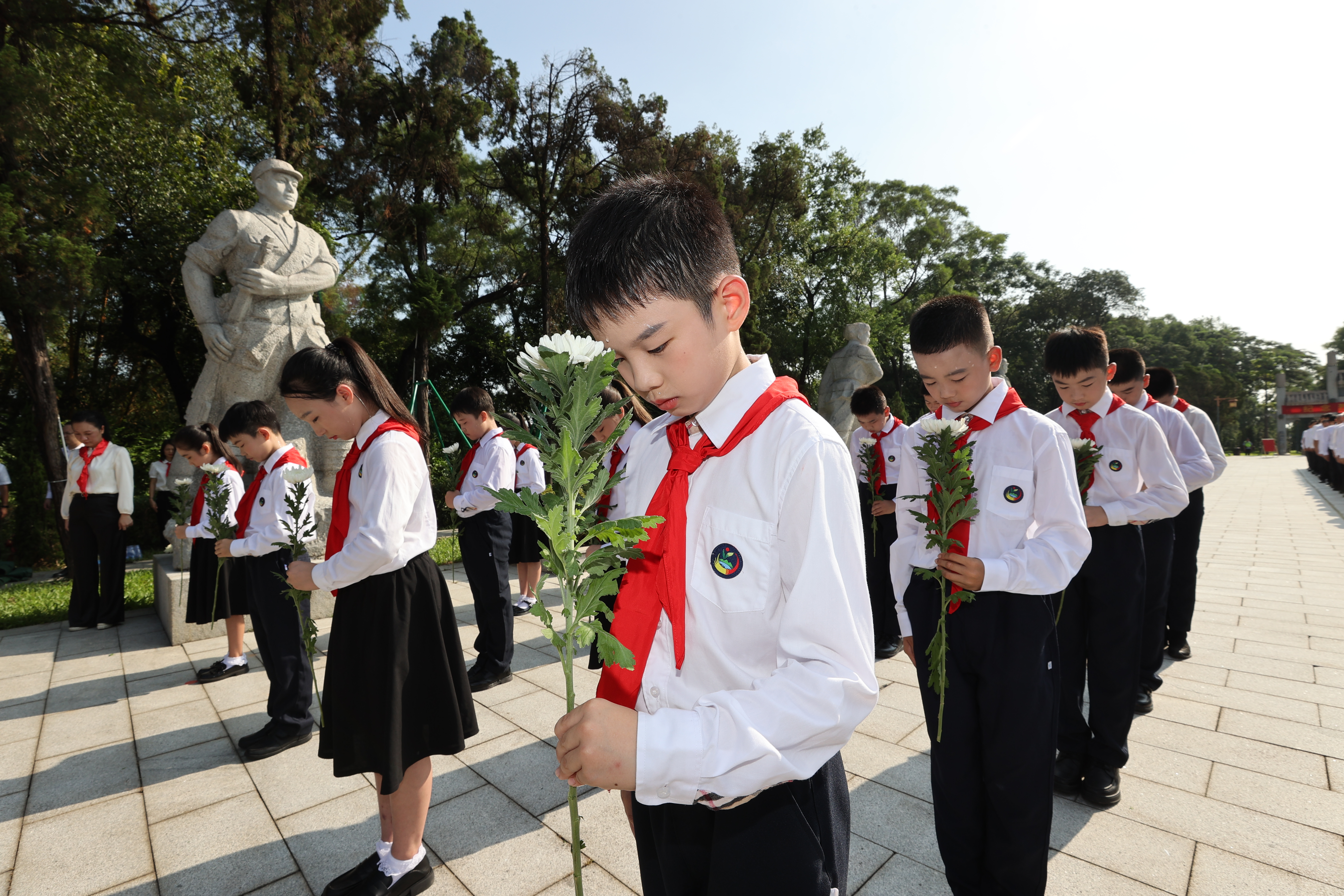 東江人民革命烈士紀念碑前,少先隊員代表齊聲合唱《我們是共產(chǎn)主義接班人》,緩步繞行瞻仰紀念碑,向革命烈士表達最崇高的敬意;課堂上,退役飛行員把“空天”故事講給青少年聽,別樣的“開學第一課”,激發(fā)家國情懷,強化安全擔當。
