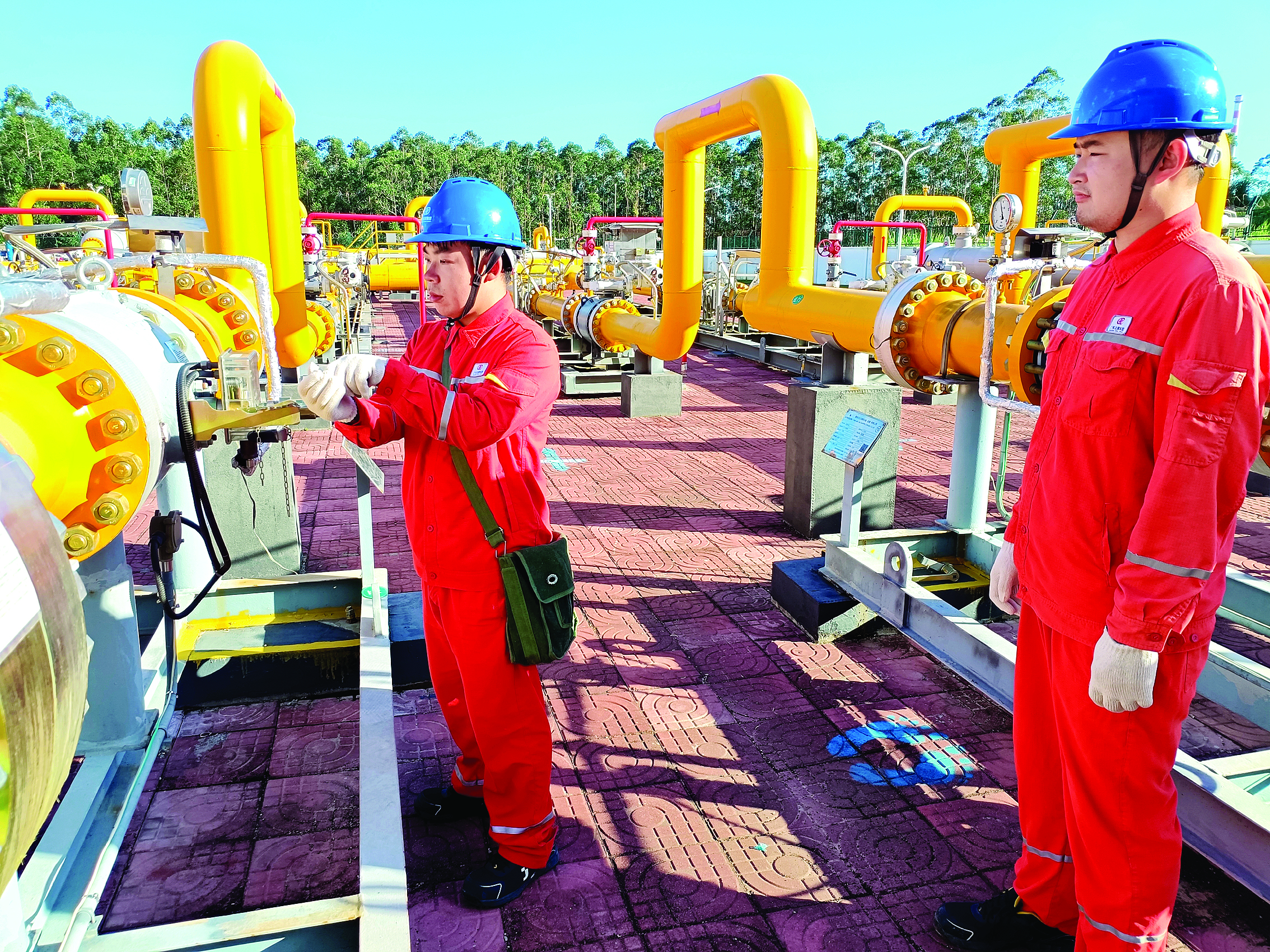 工作人員在大亞灣分輸清管站作業(yè)。 惠州日報記者謝寶樹 通訊員馮綺晴 李昕 攝