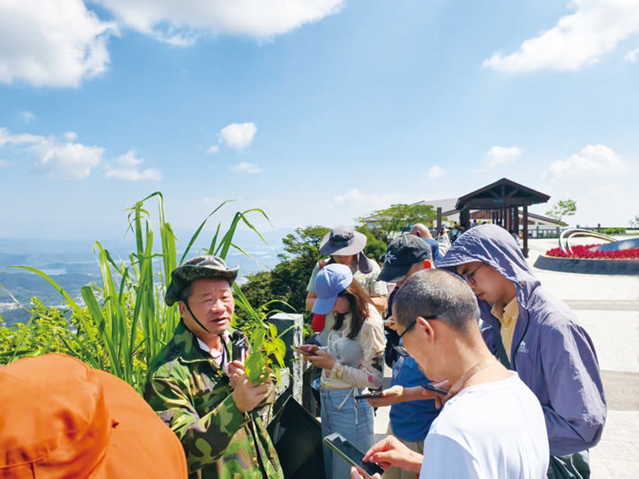 “這株是雞蛋花,是五花茶原料之一,作為外來(lái)物種傳入不足500年;那株是鐵冬青,公樹(shù)有花無(wú)果,母樹(shù)花果皆有,全身都是寶……”循著周天來(lái)的指引,導(dǎo)游們穿梭在羅浮山的綠意之中,開(kāi)啟了一堂生動(dòng)的“行走的本草課”。課堂上,周天來(lái)從植物形態(tài)辨識(shí)入手,深入淺出地講解各類藥材的四氣五味、炮制方法與藥用價(jià)值,更穿插著羅浮山“洞天藥市”的歷史傳說(shuō)與民間用藥故事。導(dǎo)游們時(shí)而俯身觀察,時(shí)而認(rèn)真記錄,在觸摸草木、聆聽(tīng)講解的過(guò)程中,切實(shí)感受到中醫(yī)藥文化的博大精深。