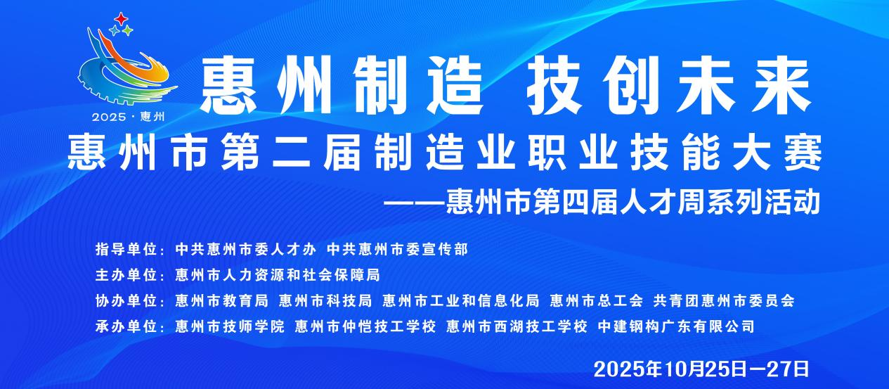 比賽地點(diǎn):惠州市技師學(xué)院、惠州市仲愷技工學(xué)校、惠州市西湖技工學(xué)校、中建鋼構(gòu)廣東有限公司