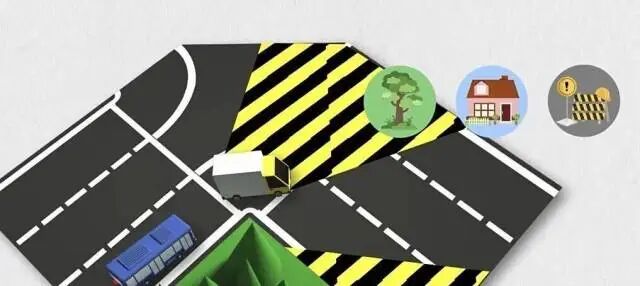 通過交叉路口時(shí),容易因樹木、建筑物、施工圍擋等遮擋形成盲區(qū);跟車轉(zhuǎn)彎時(shí),視線也會(huì)受限。此時(shí)駕駛員需依次轉(zhuǎn)彎,直行時(shí)車速不超30公里/時(shí),轉(zhuǎn)彎時(shí)車速不超20公里/時(shí)。