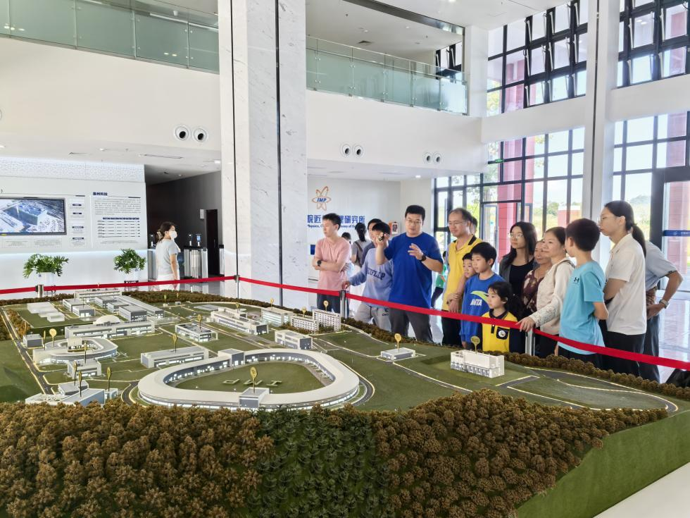 市民參觀強(qiáng)流重離子加速器裝置(HIAF)與加速器驅(qū)動(dòng)嬗變研究裝置(CiADS)沙盤模型。中國(guó)科學(xué)院近代物理研究所供圖