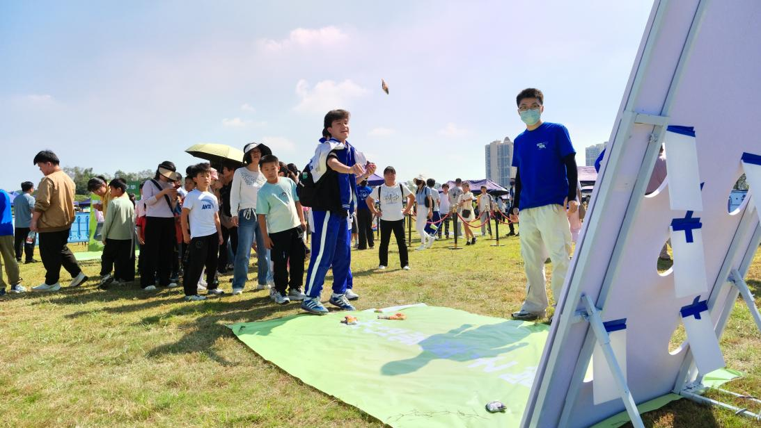 互動(dòng)體驗(yàn)是本次活動(dòng)的亮點(diǎn)。在實(shí)驗(yàn)秀上,高溫超導(dǎo)磁懸浮、核孔膜超黑材料隱身等趣味實(shí)驗(yàn)輪番上演;在“粒子特工訓(xùn)練基地”,孩子們通過游戲模擬重離子在加速器中的運(yùn)動(dòng)軌跡,在沉浸體驗(yàn)中理解重離子加速器的工作原理;創(chuàng)工坊里,孩子們?cè)谑止だ蠋煹闹笇?dǎo)下進(jìn)行科學(xué)制作,進(jìn)一步激發(fā)了他們對(duì)科學(xué)探索的熱情。