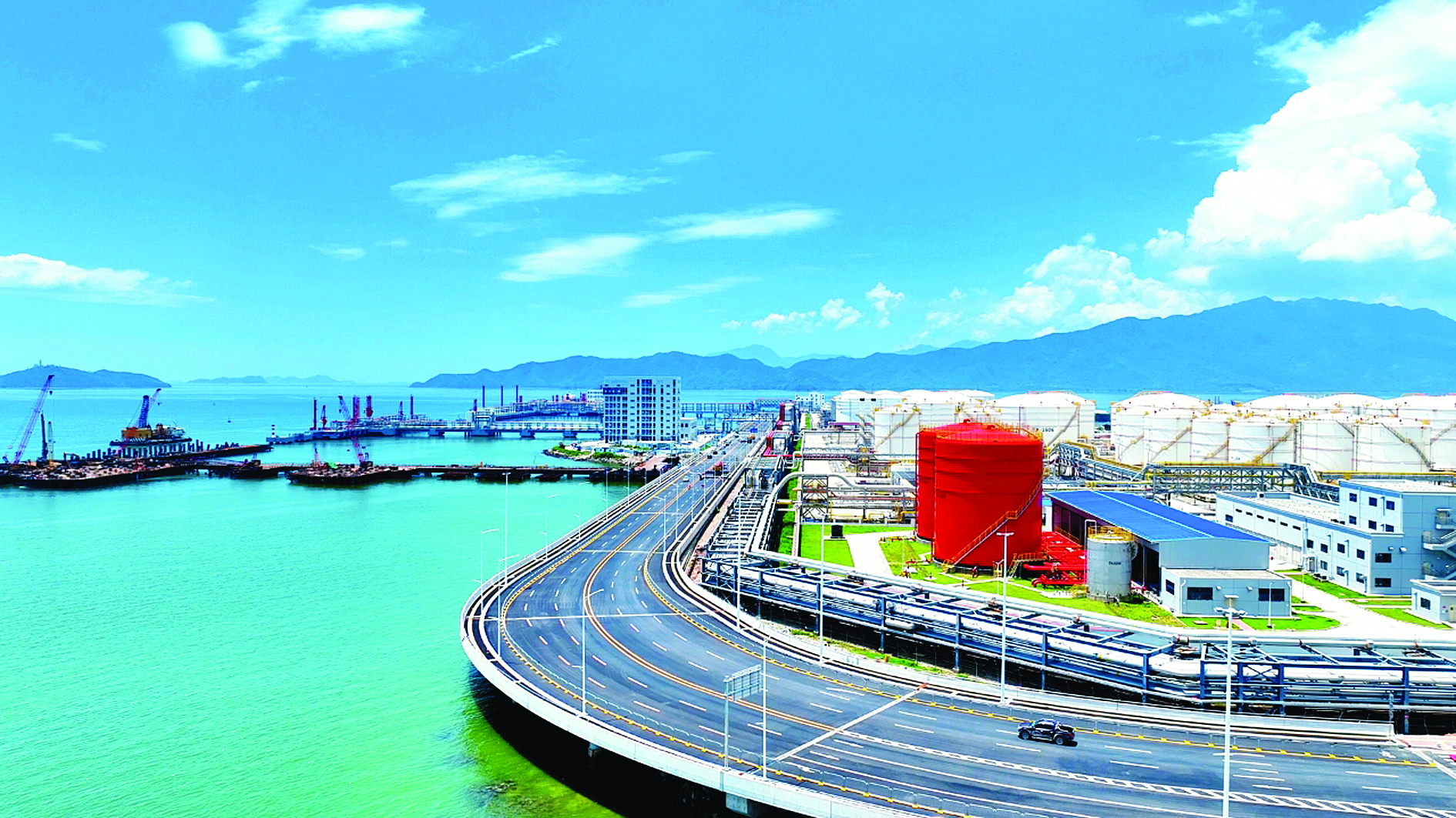 美麗的惠州港,陽光灑在波光粼粼的海面上,碼頭后方石化園區(qū)林立的塔罐也熠熠生輝。石化原料和產(chǎn)品正借著這座深水良港在區(qū)域與全球市場間奔流不息。