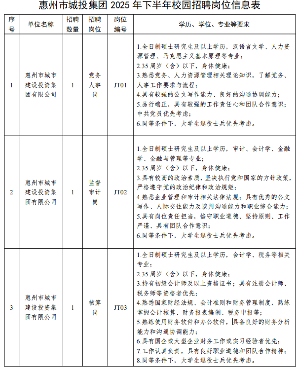點(diǎn)擊查看公告詳情:惠州市城市建設(shè)投資集團(tuán)有限公司2025年下半年校園招聘公告
