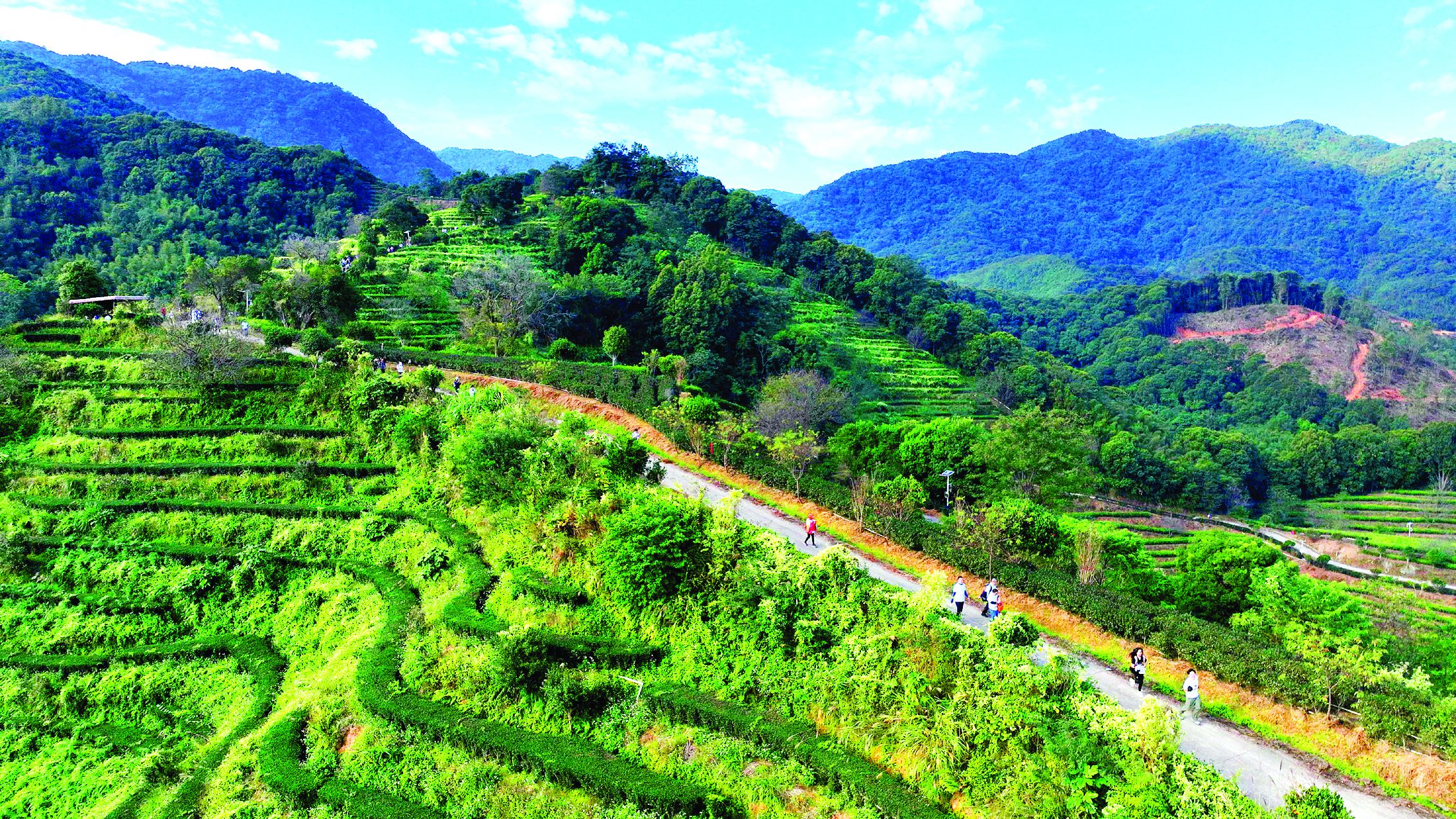 戶外運動愛好者、環(huán)保志愿者、企業(yè)團隊與親子家庭在象頭山茶園徒步;葜萑請笥浾呃钏蓹(quán) 攝