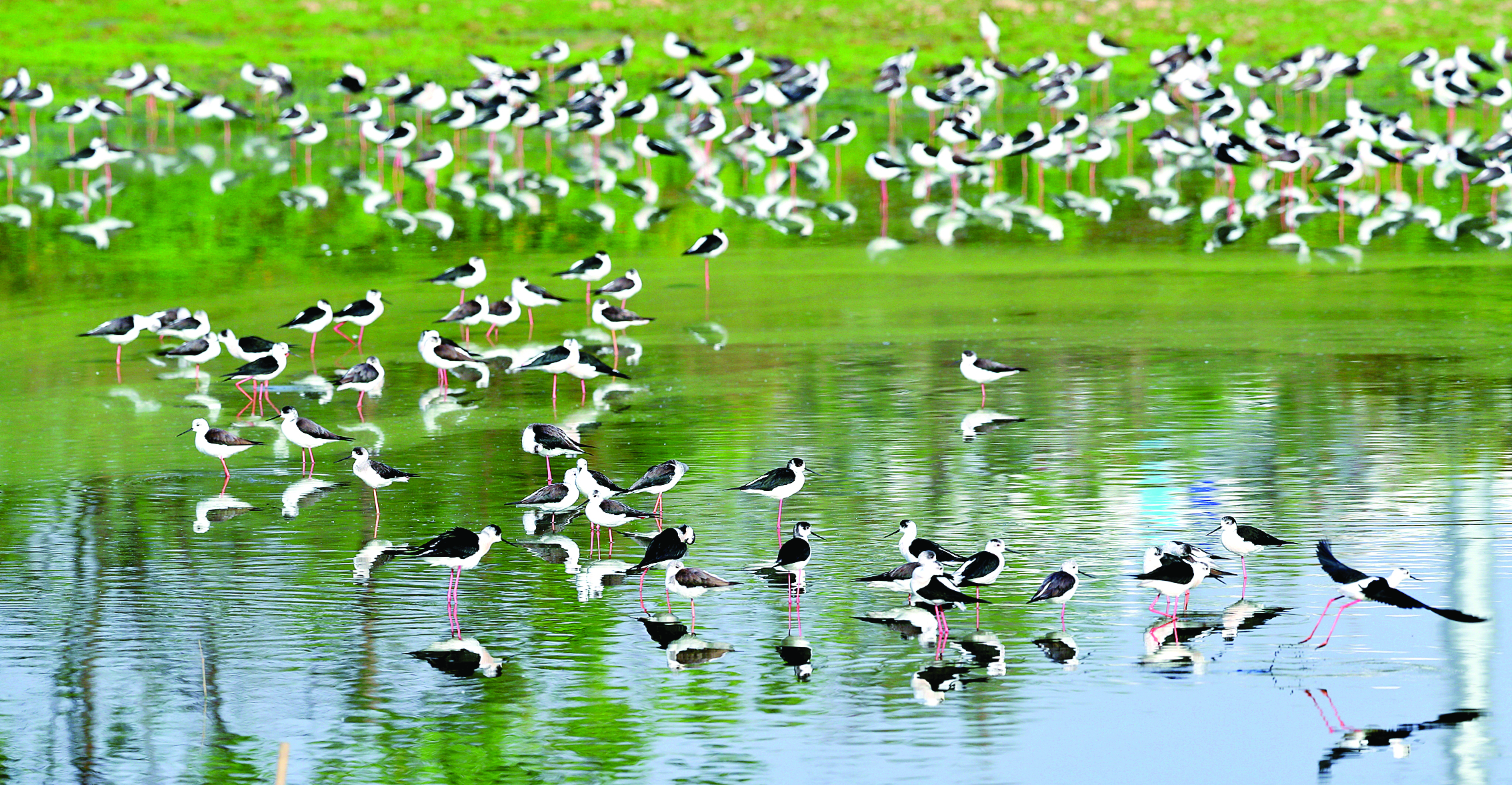 黑翅長(zhǎng)腳鷸;葜萑?qǐng)?bào)記者朱金贊 攝