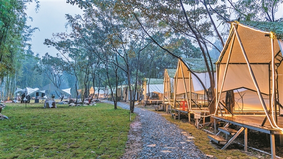 每至周末,田小野露營(yíng)基地人流涌動(dòng)。這里依山傍水,谷深林密,溪流涓涓。白天,游客們徜徉在山水間,擁抱大自然。夜幕降臨,篝火晚會(huì)等活動(dòng)熱鬧非凡,讓古老村莊煥發(fā)活力。