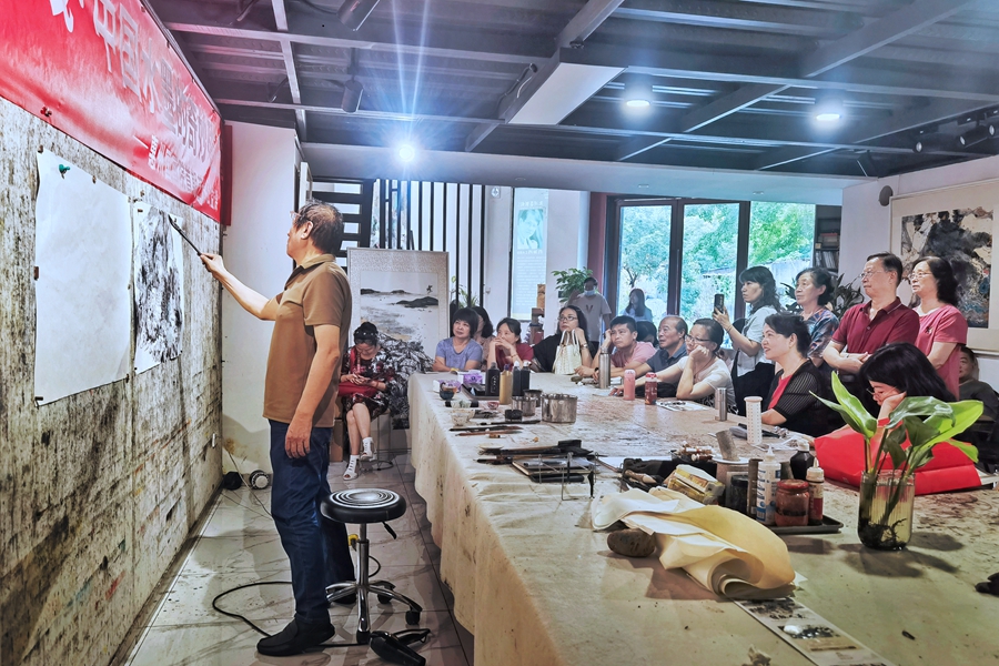 “老師,您用的是什么樣的宣紙?”“這里用墨有什么講究?”“落款落到哪里更合適?”……6月2日上午,惠州國畫院首期藝術公益課在市區(qū)江北加鴻藝術館舉行。我市著名畫家、惠州市美術家協(xié)會名譽副主席、惠州畫院常務副院長肖加鴻以《學習與實踐·中國水墨的奇妙碰撞》為題,圍繞中國水墨畫歷史演變、近現(xiàn)代水墨畫的特點、現(xiàn)代水墨畫創(chuàng)作的新思想等方面,為30余位美術愛好者帶來了一堂生動的藝術課。