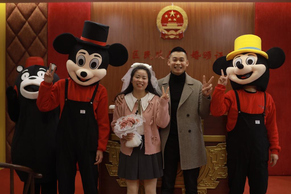 2月14日,吳樸慧和李有霖在重慶市璧山區(qū)民政局婚姻登記處領(lǐng)證合影。(受訪者供圖)