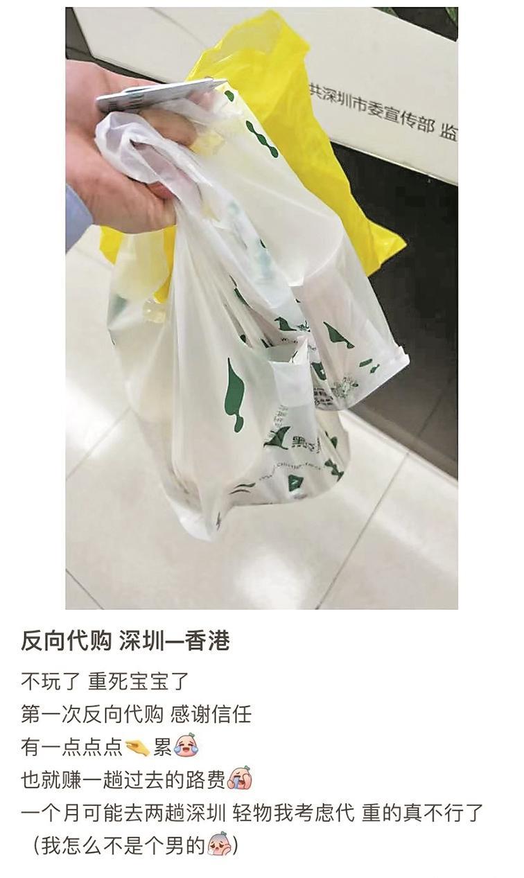 “賺的都是辛苦錢!”雖然從深圳代購產(chǎn)品赴港的市場越來越大,但小莉坦言,像自己這種小成本的美食跨境代購利潤不高,還要花費較多的時間和體力!皬膶W校出發(fā)回香港要一個小時左右,途中采購需要20分鐘,然后過關(guān)坐港鐵到家本來是20分鐘左右,但因為地鐵沿途要下車,在各個送貨地點與客戶接頭,又會耽誤一點時間!崩塾嬒聛,小莉做一次“反向代購”需要額外花將近一個小時的時間。