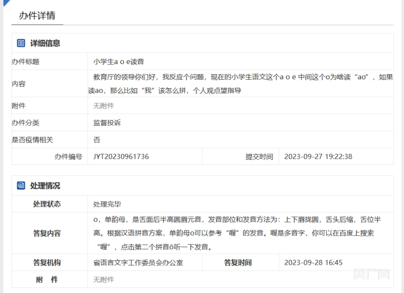 9月28日,山東省教育廳內(nèi)設(shè)機(jī)構(gòu)——省語(yǔ)言文字工作委員會(huì)辦公室對(duì)這個(gè)問(wèn)題進(jìn)行了回復(fù):根據(jù)漢語(yǔ)拼音方案,單韻母o可以參考“喔”的發(fā)音。