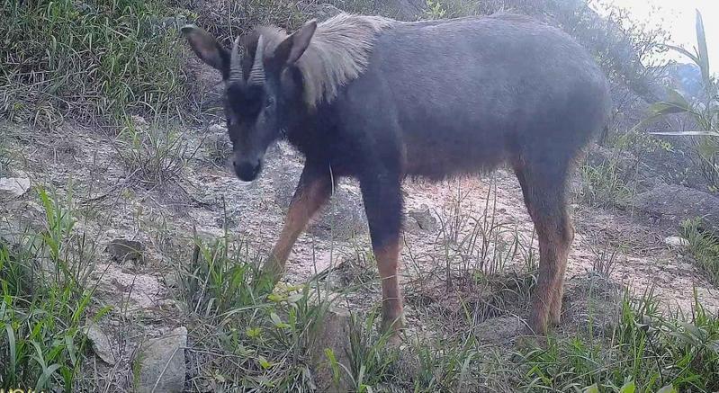 中華鬣羚是國(guó)家二級(jí)保護(hù)野生動(dòng)物,主要棲息在針闊混交林、針葉林或多巖石的雜灌林,單獨(dú)或成小群生活,多在早晨和黃昏活動(dòng),行動(dòng)敏捷,善于在險(xiǎn)崖上跳躍。它的角像鹿不是鹿、蹄像牛不是牛、頭像羊不是羊、尾像驢不是驢,因此也被稱為“四不像”。