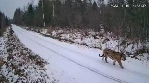 2022年11月15日14時,在伊春市豐林縣五營林業(yè)局有限公司永豐林場分公司,一處監(jiān)控設(shè)備拍攝到東北虎。東北林業(yè)大學(xué)貓科動物研究中心對足跡進行了鑒定,認(rèn)定為野生東北虎。