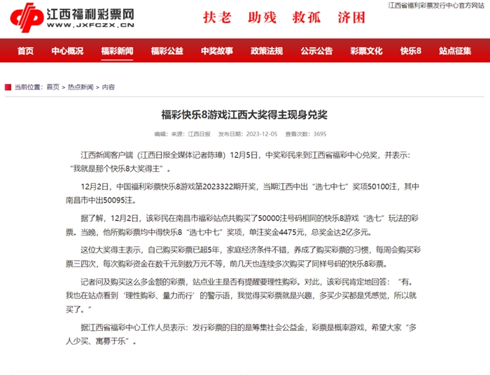 江西福利彩票網(wǎng)對大獎得主的報道。