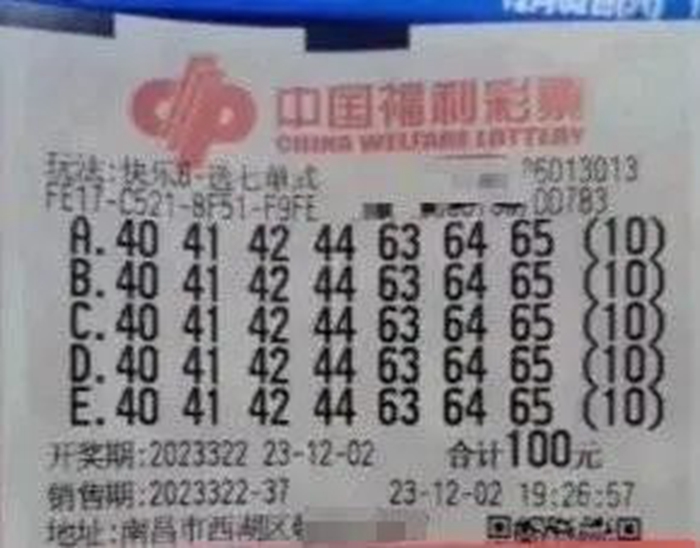12月4日,記者從南昌市西湖區(qū)多位福利彩票店店主處了解到,12月2日晚,中國福利彩票快樂8游戲第2023322期開獎后,南昌西湖區(qū)各投注站陸續(xù)將站點的“戰(zhàn)報”分享到工作群中,其中兩張選號相同的“選七中七”的購彩記錄圖片,因合計中獎金額接近5億元,引起群成員熱議和轉(zhuǎn)發(fā)擴散。