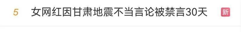 “女網(wǎng)紅因甘肅地震不當(dāng)言論被禁言30天”