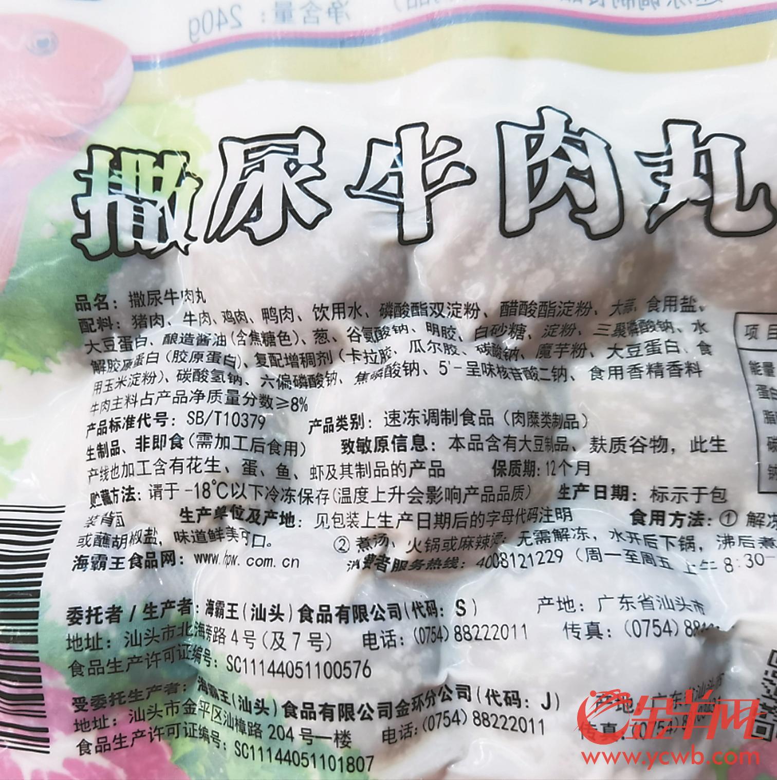 關(guān)于食品名稱問題,《通則》指出,應(yīng)在食品標(biāo)簽的醒目位置,清晰地標(biāo)示反映食品真實(shí)屬性的專用名稱!叭绻蛔屑(xì)看真的不知道里面還有這些門道,既然豬肉成分排在第一位,應(yīng)該叫撒尿豬肉丸。”一位正在購買火鍋食材的消費(fèi)者對(duì)海霸王撒尿牛肉丸提出質(zhì)疑。