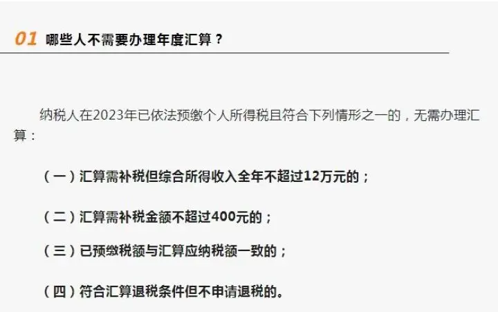 哪些人不需要辦理年度匯算?哪些人需要辦理年度匯算?一起了解一下吧↓