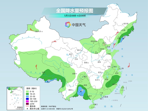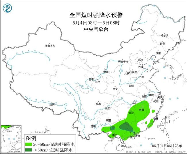 預(yù)計(jì)5月4日8時(shí)至5日8時(shí),江西中南部、廣西中北部、廣東中部和西部等地的部分地區(qū)將有8—10級雷暴大風(fēng)或冰雹天氣,其中廣西中北部、廣東中部等地的局地將有10級以上雷暴大風(fēng),最大風(fēng)力可達(dá)11級;湖北東南部、安徽南部、湖南東部、江西、福建東南部和西北部、云南東南部、廣西、廣東中西部等地的部分地區(qū)將有小時(shí)雨量大于20毫米的短時(shí)強(qiáng)降水天氣,其中廣西中東部、廣東西北部等地的局地最大小時(shí)雨量大于50毫米,最大可達(dá)70毫米以上。