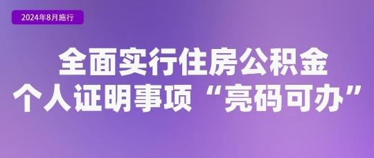 《住房城鄉(xiāng)建設(shè)部辦公廳關(guān)于整合住房公積金個人證明事項推動“亮碼可辦”工作的通知》提出,依托全國住房公積金小程序和全國住房公積金監(jiān)管服務平臺,在住房公積金繳存人申請開具職工繳存證明、異地貸款繳存使用證明、貸款結(jié)清證明等個人證明時,向其提供實時在線開具、后臺自動查驗等服務,以統(tǒng)一“電子碼”代替原有3項紙質(zhì)證明,實現(xiàn)住房公積金個人證明事項“亮碼可辦”。2024年8月起,全面實行住房公積金個人證明事項“亮碼可辦”。