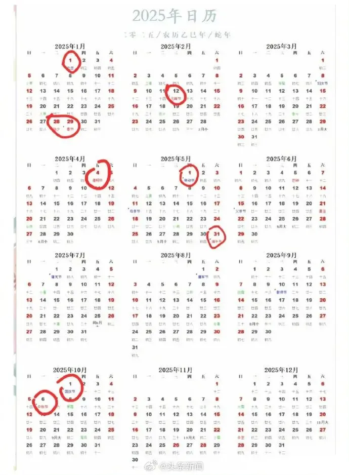 再往后看全年的假期,有網(wǎng)友發(fā)現(xiàn),2025年中秋節(jié)在10月6日,恰逢國慶長假,而端午節(jié)在5月31日,這意味著明年6月~9月除周末外,整整4個月都沒有法定節(jié)假日。