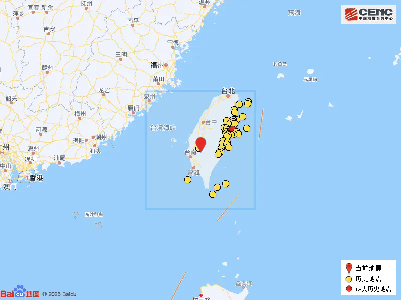 歷史地震:根據(jù)中國地震臺(tái)網(wǎng)速報(bào)目錄,震中周邊200公里內(nèi)近5年來發(fā)生4級以上地震共370次,最大地震是2024年4月3日在臺(tái)灣花蓮縣海域發(fā)生的7.3級地震(距離本次震中135公里),按震級大小前50次歷史地震分布如圖。