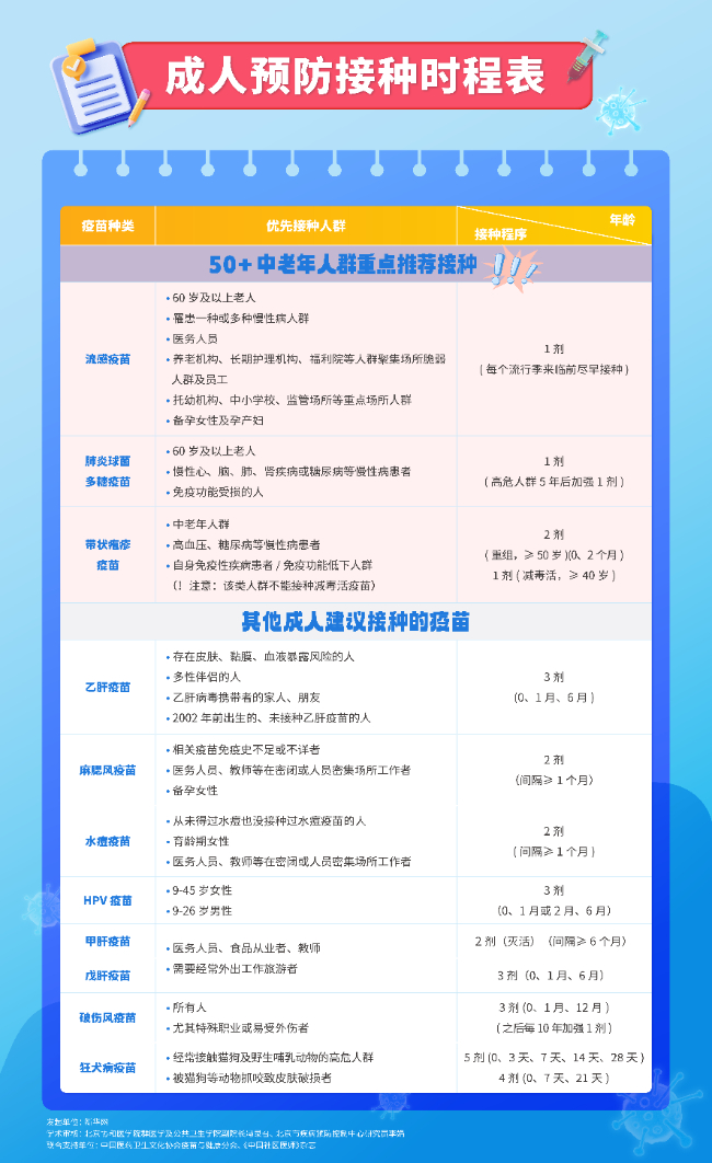 疫苗不是孩子專(zhuān)屬!這份“成人預(yù)防接種保典”請(qǐng)收好↓↓
