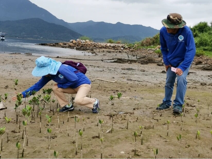 大亞灣志愿者在悉心呵護(hù)紅樹苗成長(zhǎng)。