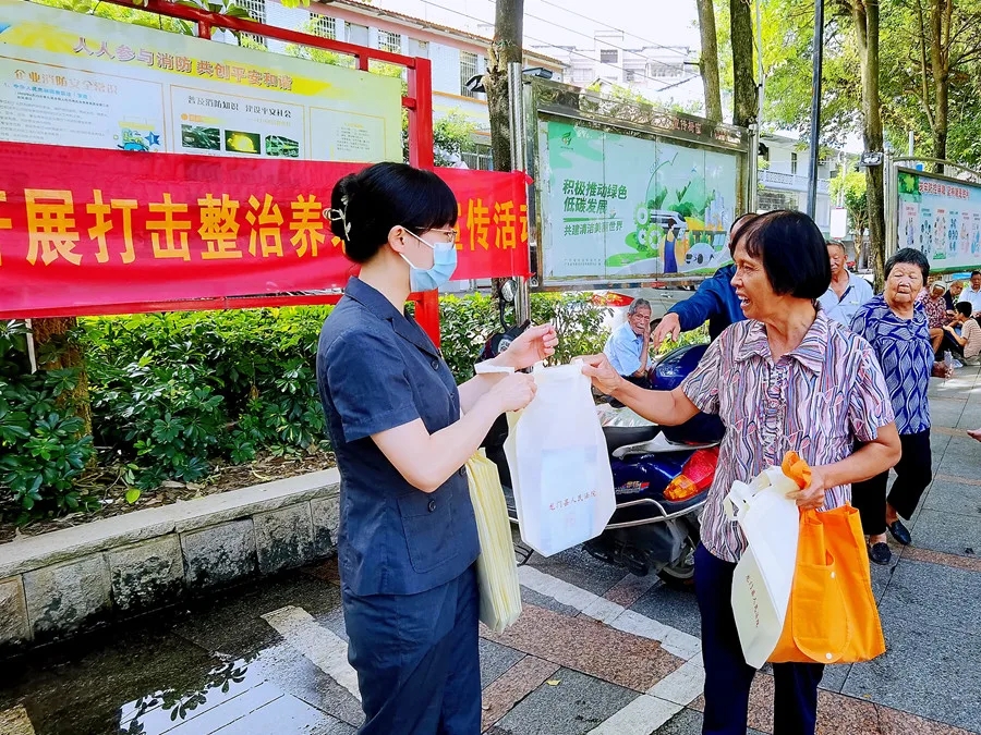 工作人員到街頭、社區(qū),開(kāi)展防范養(yǎng)老詐騙專項(xiàng)宣傳活動(dòng)。