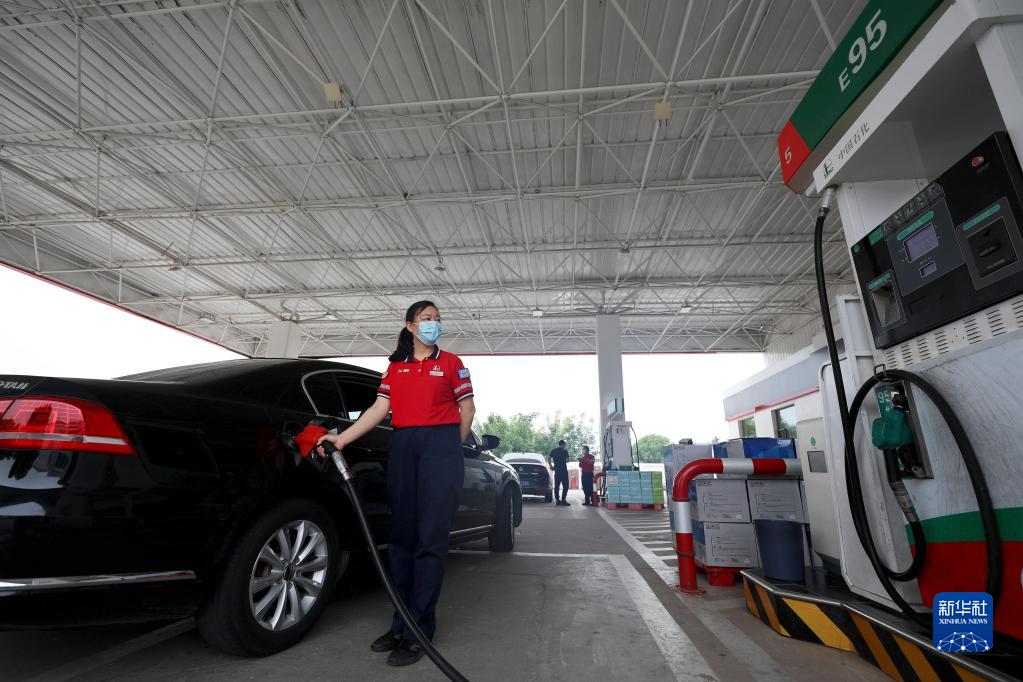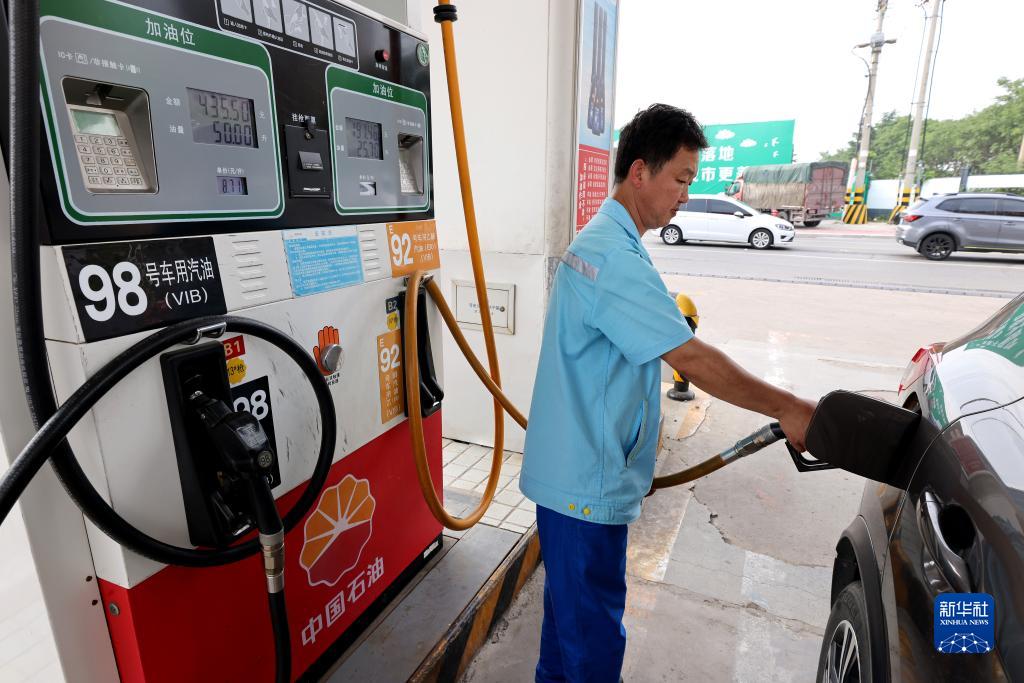 6月28日,河北省邢臺(tái)市任澤區(qū)一家加油站的工作人員在給汽車加油。
