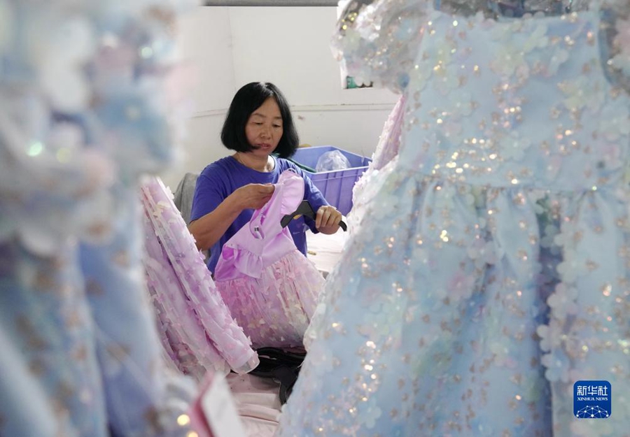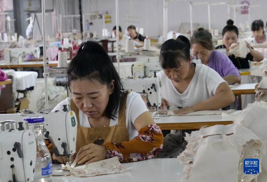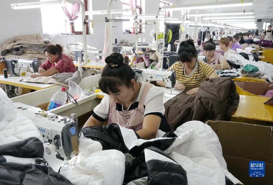 9月6日,工人在遵化市石門鎮(zhèn)一家服裝加工企業(yè)的生產(chǎn)車間工作。