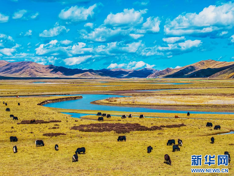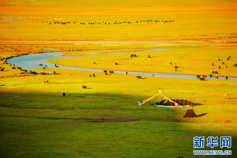 漫澤塘濕地大草原牛羊成群。新華網(wǎng)發(fā)(夏雪東爾 攝)