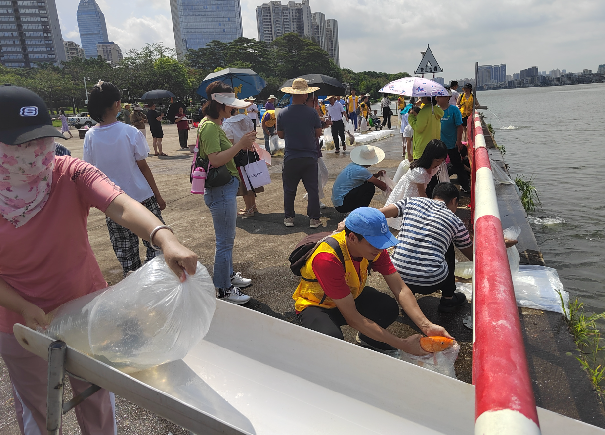巿民參加放流活動(dòng)。惠州日?qǐng)?bào)記者朱金贊 攝