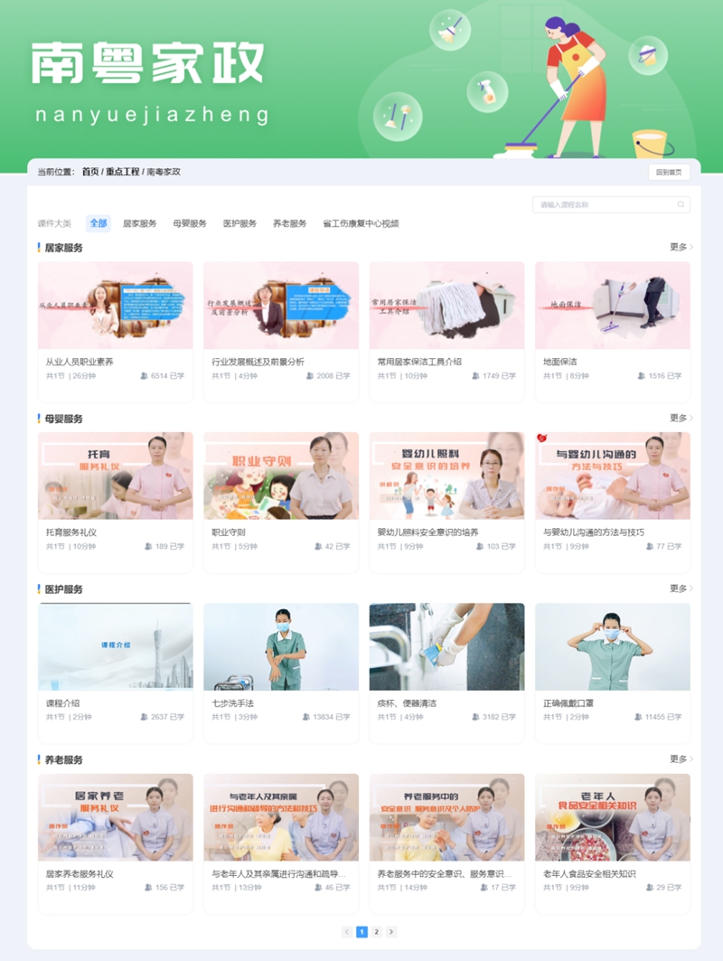 如果你想提升家政技能那么可以選擇“南粵家政”課程資源